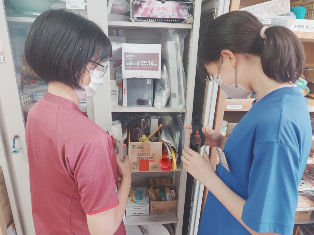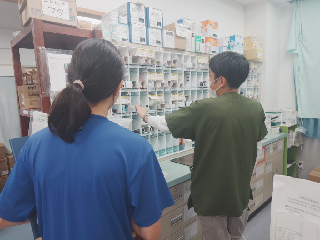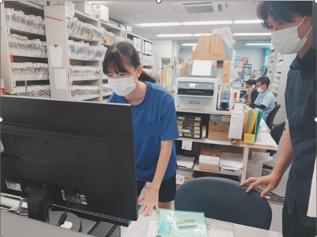 院内薬局にはたくさんの薬が並んでいて、効果等について教えてもらいました。リハビリでは、手が使えない方、足が不自由な方のために、いろいろ便利な道具があり面白かったです。外来では、採血の準備をしているところを見学しました。他にも、放射線室、検査室なども見学させて頂きました。各部署において医事課が深く関わっていることがわかり、この機会に他部署を回れて良かったです。