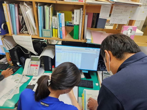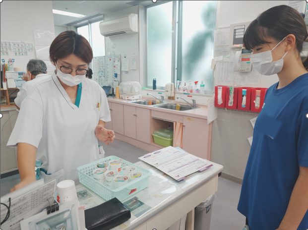 外来、入院の会計について教えてもらいました。難しくて苦手だなと思っていたけどやっていくうちにどのように見るのか理解できるようになったのが良かったです。初めて「点数」について教えてもらいました。〇〇の病棟に入院すると▲▲点などそれぞれ違っていて、覚えることがたくさんだと思いました。