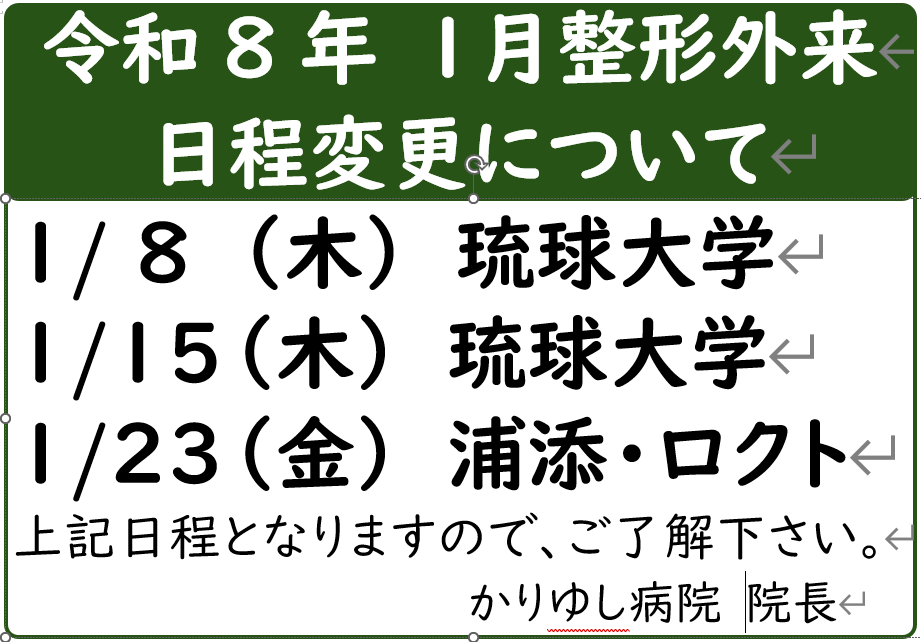 > 令和8年 1月 整形外科日程変更のお知らせ