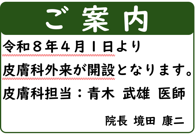 令和8年4月1日より、皮膚科を開設する事となりました。